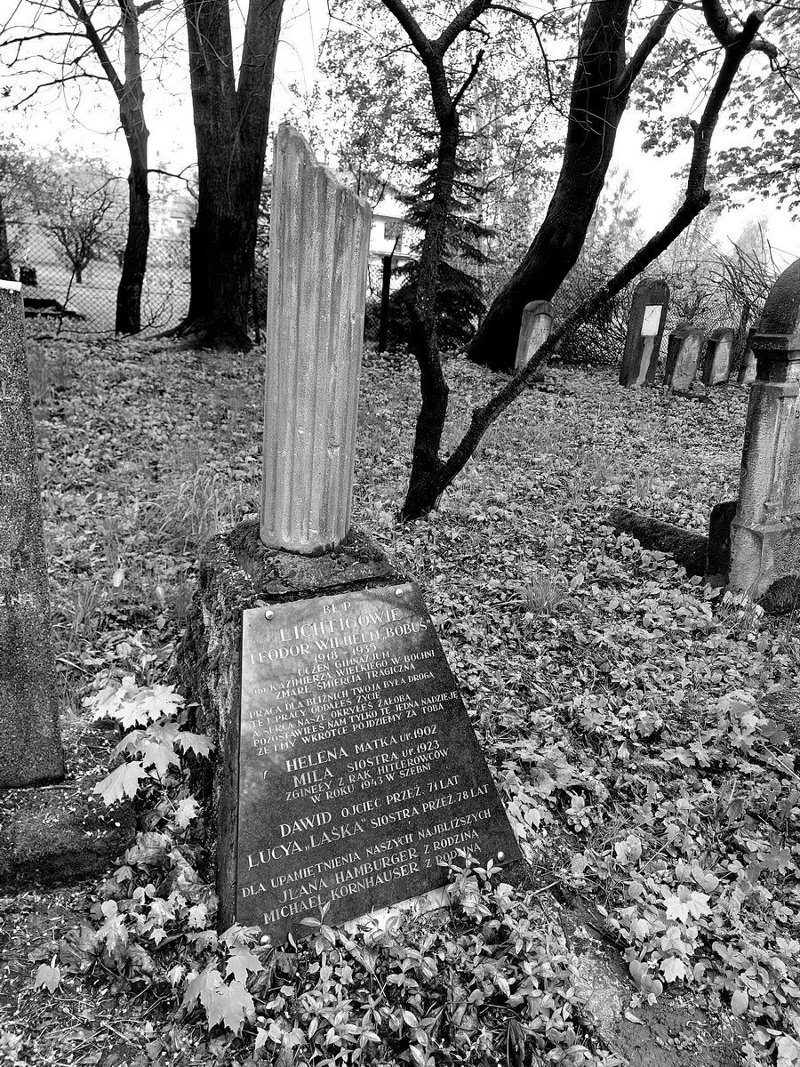 At the entrance to the necropolis, there is the tomb of Rabbi and tzaddik Asher Majer Halberstam, who died on February 15, 1932, son of Józef Zew, descendant of Chaim Halberstam, the founder of the Hasidic dynasty from Nowy Sącz (Sanz). On the matzevot decorated with a bas-relief of lions supporting the crown and a cabinet with holy books, there is an inscription: "Here buried the great rabbi, an outstanding, holy and immaculate man, our superior, our teacher, Rabbi Asher Majer, son of Rabbi Józef Zewa, blessed in memory of the righteous Halberstam, grandson of the righteous rabbi , master Chaim and scholar Zwi of blessed remembrance of God-fearing. Chairman of the Sacred Congregation in Bochnia and Galicia. He passed away on the 8th of Adar 692 in abbreviated reckoning. May his soul be included in the wreath of eternal life.