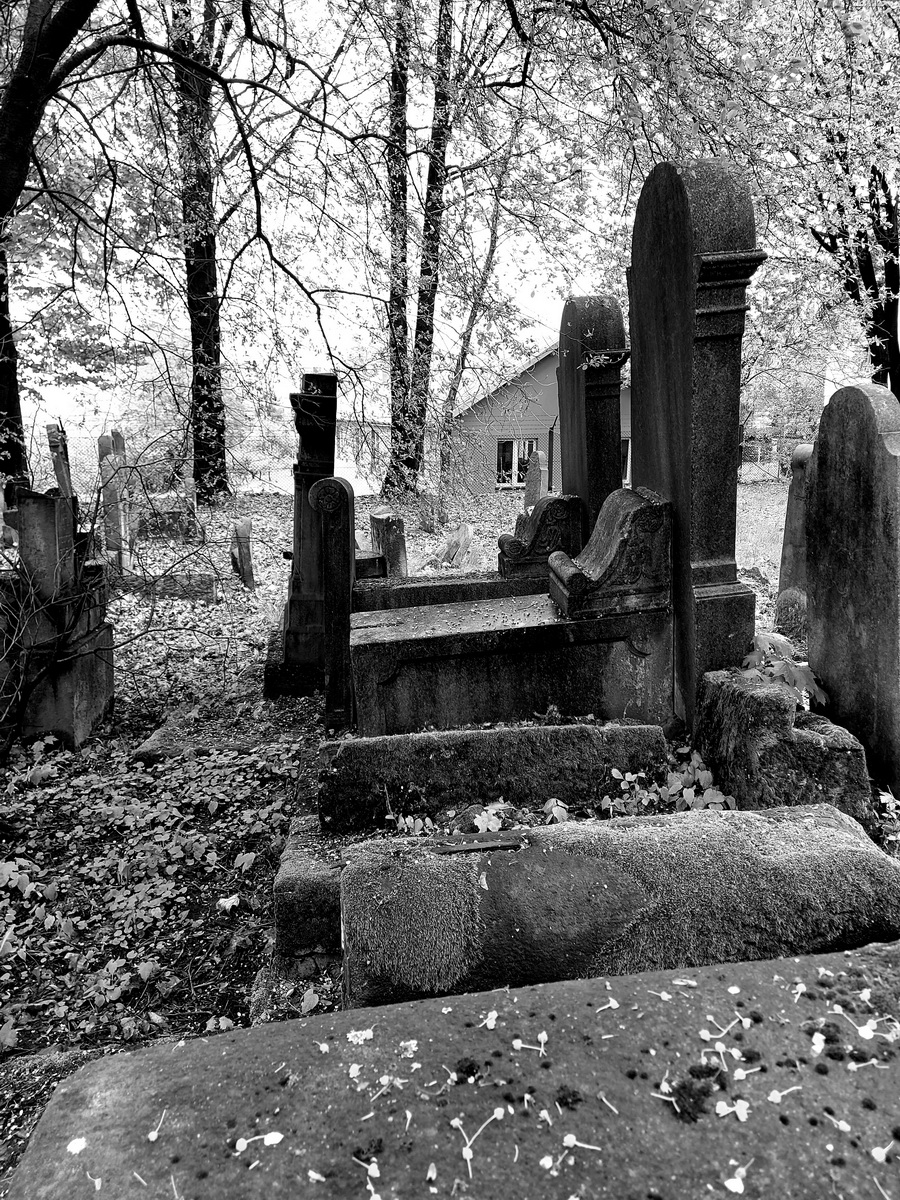 The vast majority of matzevot are made of sandstone. Old gravestones made of Swedish granite have not been preserved, they were dismantled and looted by the Germans.