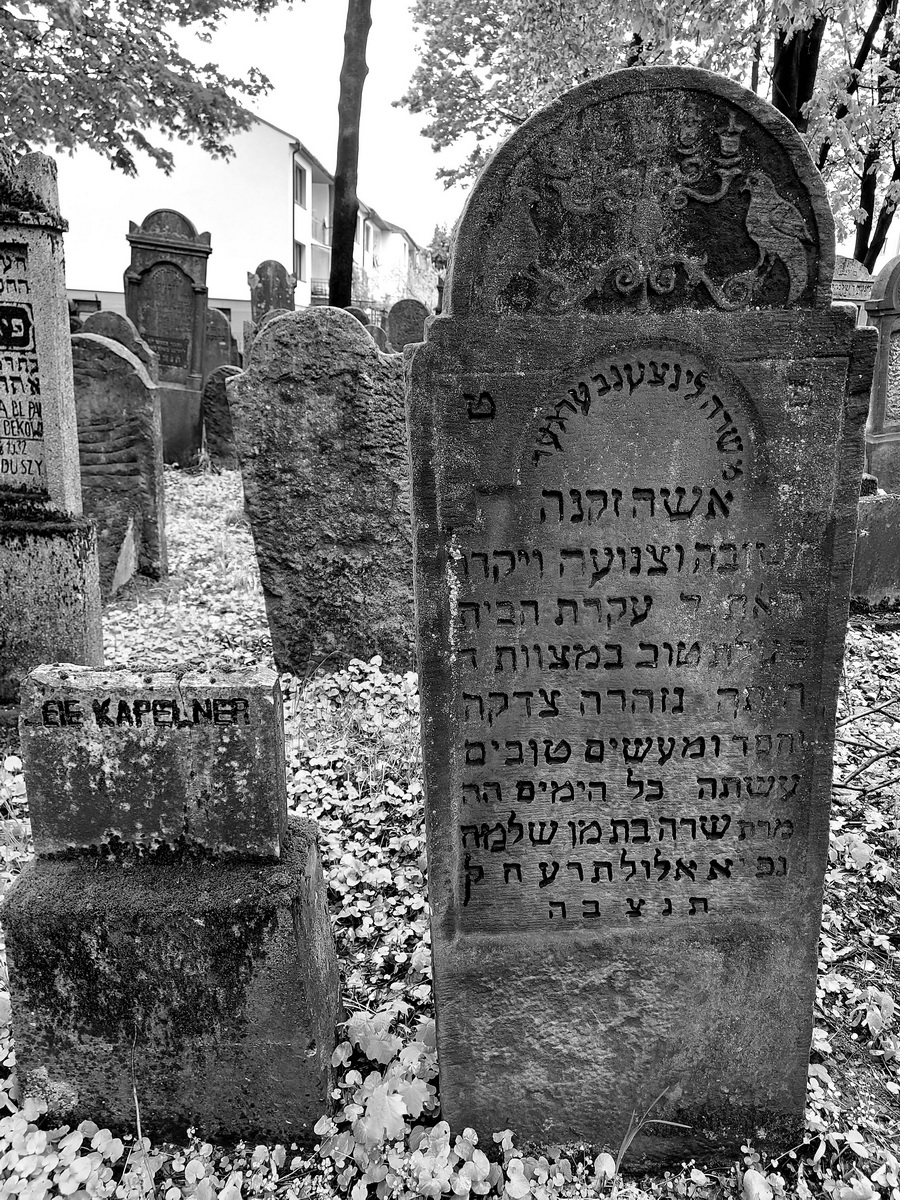 The latest commemorative plaques, funded by families of people buried at the cemetery, are made of granite. Over 70% of all tombstones are in good condition, with inscriptions in Polish, Hebrew, Yiddish and German, renovated and corrected by students of the Art High School in Nowy Wiśnicz.