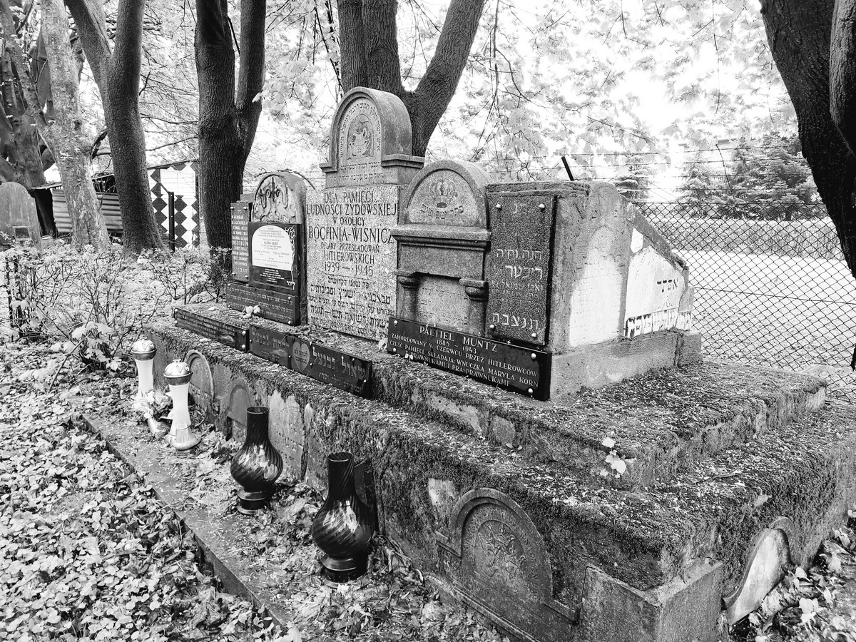 On the left side of the entrance there is a mass grave of the Jewish population from Bochnia, Nowy Wiśnicz and the surrounding villages, as well as Jews from Bochnia, Kraków, Brzesko, Krzeszowice, Mielec, Dębica and other places who were murdered in the ghetto in 1941-1943 by the Germans. As a result of the executions carried out in the cemetery, about 300 people lost their lives. In the 1960s, a monument commemorating the murdered was unveiled. The obelisk was built from destroyed matzevot.