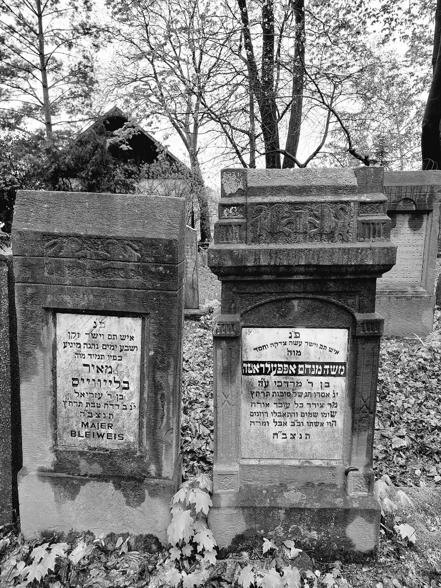 The vast majority of matzevot are made of sandstone. Old gravestones made of Swedish granite have not been preserved, they were dismantled and looted by the Germans.