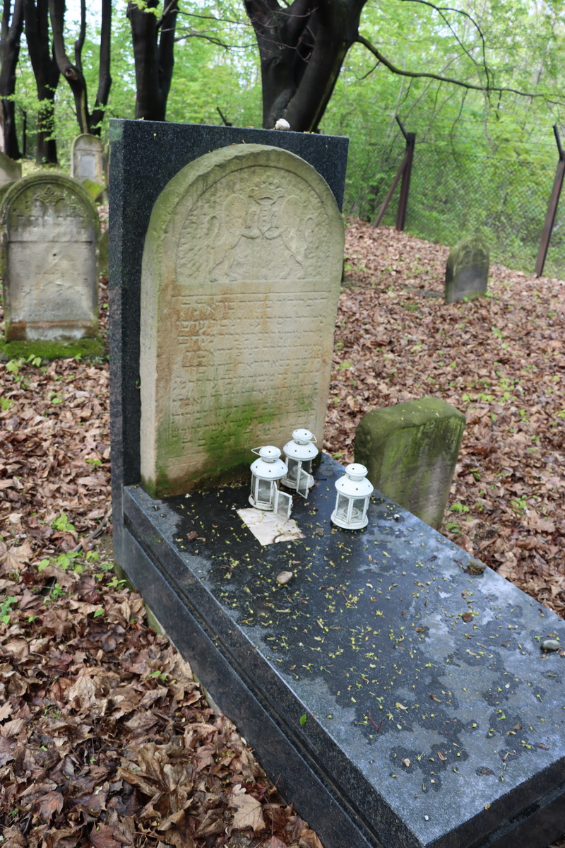 At the entrance to the necropolis, there is the tomb of Rabbi and tzaddik Asher Majer Halberstam, who died on February 15, 1932, son of Józef Zew, descendant of Chaim Halberstam, the founder of the Hasidic dynasty from Nowy Sącz (Sanz). On the matzevot decorated with a bas-relief of lions supporting the crown and a cabinet with holy books, there is an inscription: "Here buried the great rabbi, an outstanding, holy and immaculate man, our superior, our teacher, Rabbi Asher Majer, son of Rabbi Józef Zewa, blessed in memory of the righteous Halberstam, grandson of the righteous rabbi , master Chaim and scholar Zwi of blessed remembrance of God-fearing. Chairman of the Sacred Congregation in Bochnia and Galicia. He passed away on the 8th of Adar 692 in abbreviated reckoning. May his soul be included in the wreath of eternal life.
